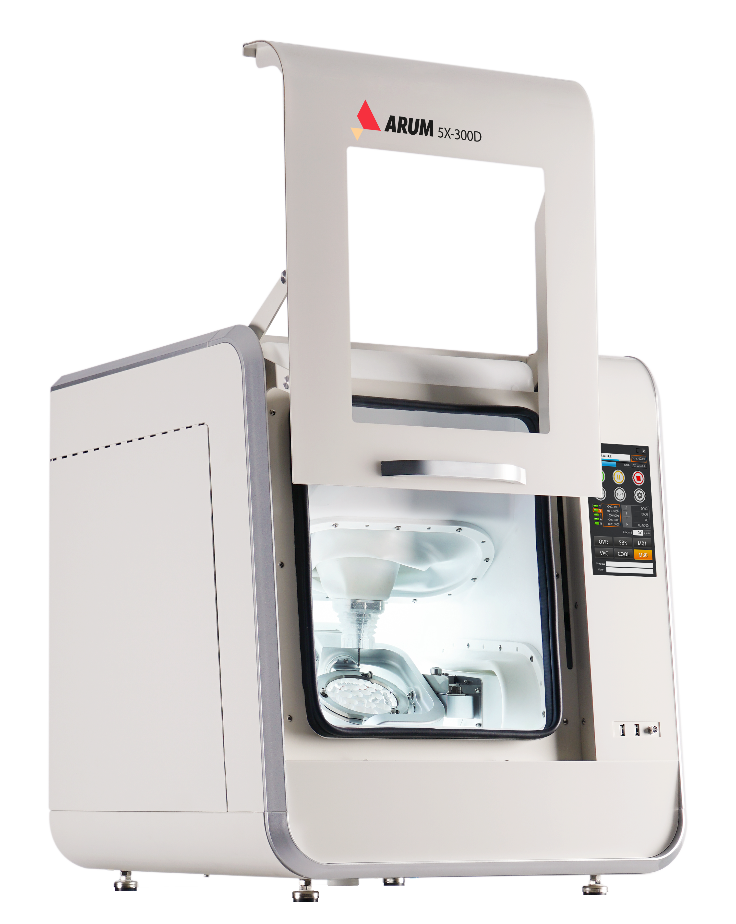 Die ARUM 5X-300 D ist die perfekte Fräsmaschine für Dentallabore und Zahnarztpraxen. Das massives Maschinenportal und hochwertige Komponenten gewährleisten höchstmögliche Stabilität und die vibrationsfreie Trockenbearbeitung von Ronden und Pin-type Materialien auf höchstem Qualitätsniveau